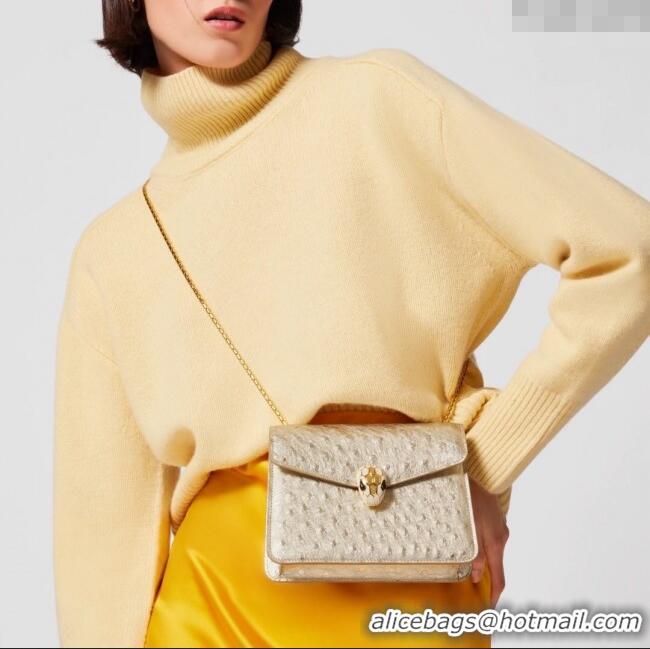 Top Grade Bvlgari Serpenti Forever Medium Shoulder Bag in Ostrich Pattern Calf Leather 30032 Gold 2024