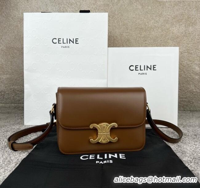 Good Looking Celine Teen Triomphe Bag in Shiny Calfskin 188423 Khaki Brown 2025