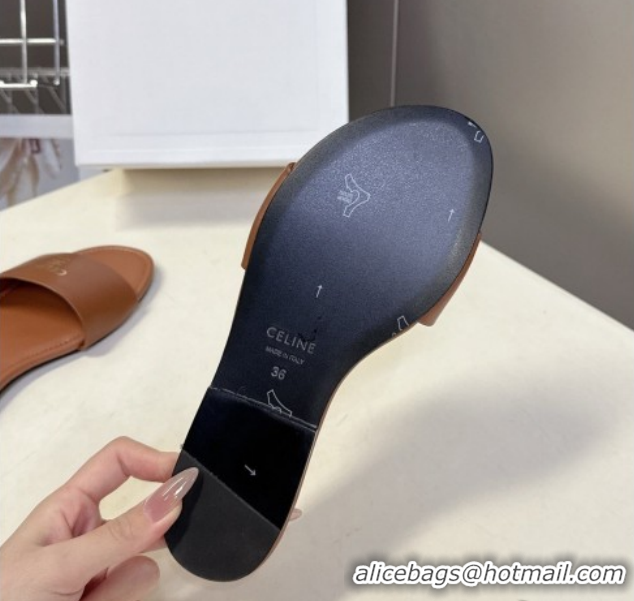 Best Price Celine Coast Flat Slides Sandal in Lambskin Leather 0227013 Tan Brown 2026