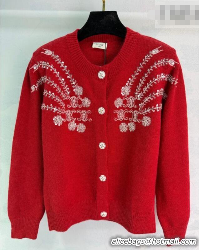 Top Grade Celine Wool Cardigan with Sequins CE020601 Red 2026