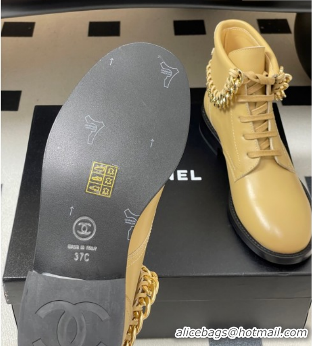 Unique Style Chanel Calfskin Leather Laced-up Ankle Boots with Chain Black CH110405 Beige Yellow 2026