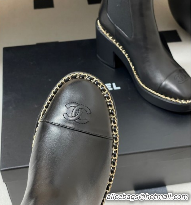 Top Grade Chanel Calfskin Leather Platform Ankle Boots with Chain CH110406 Black 2026