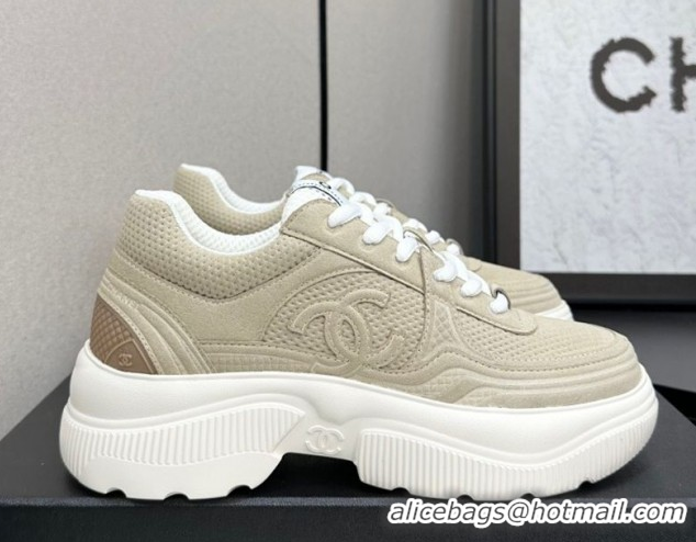 Top Grade Chanel Calfskin Leather and Knit Platform Sneakers Beige CH110104 1101047