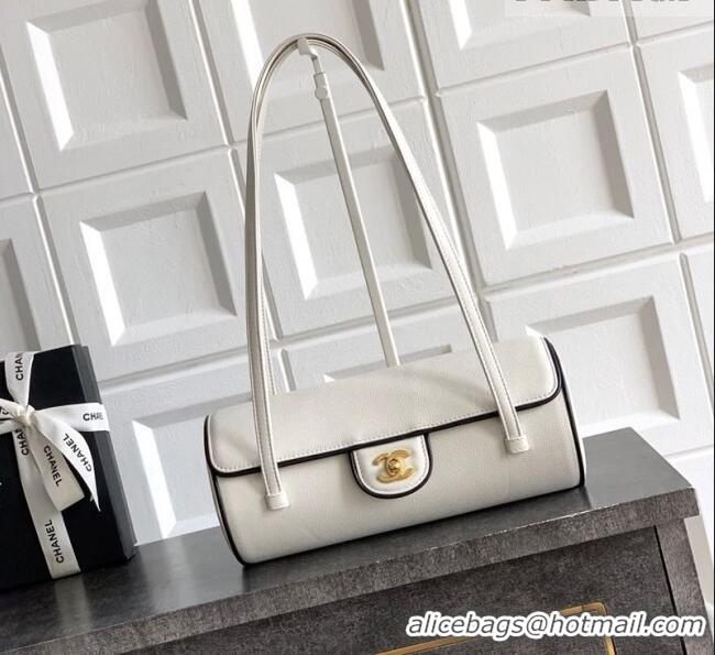 Top Grade Chanel Grained Calfskin Large Bowling Bag AS6181 White/Black 2026