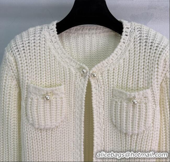 Top Grade Chanel Knit Wool Cashmere Cardigan CH110665 White 2025