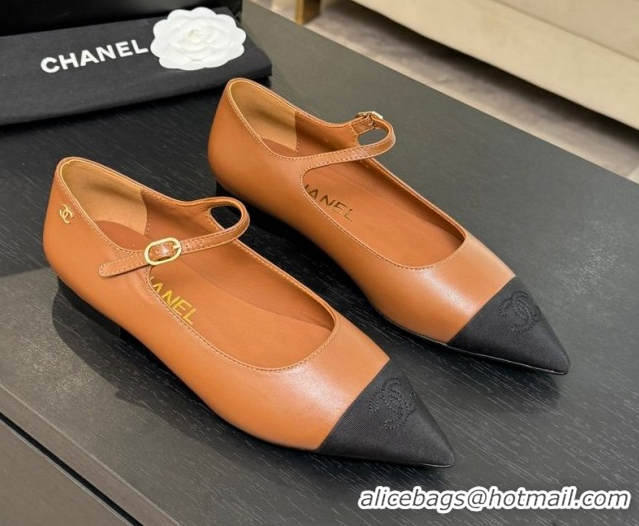 Top Grade Chanel Lambskin & Grosgrain Pointed Mary Janes Ballet Flats Brown 2025 G46849 1103040