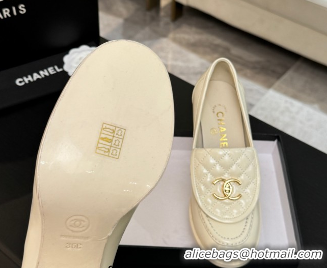 Good Quality Chanel Lambskin Leather Pumps with CC Foldover Ivory White 2025 G46692 1031119
