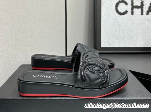 Top Grade Chanel Lambskin Leather Wedge Slides Sandal CH030605 Black1 2026