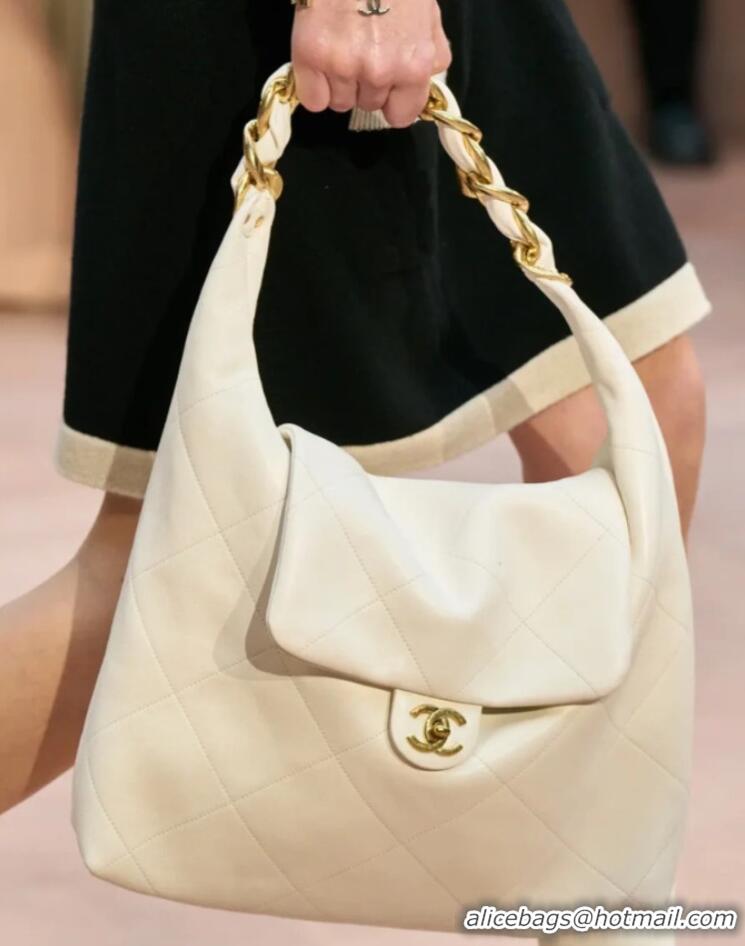 Spot Classic Chanel Maxi Hobo Bag Original Shiny Calfskin Leather AS5838 White/Gold