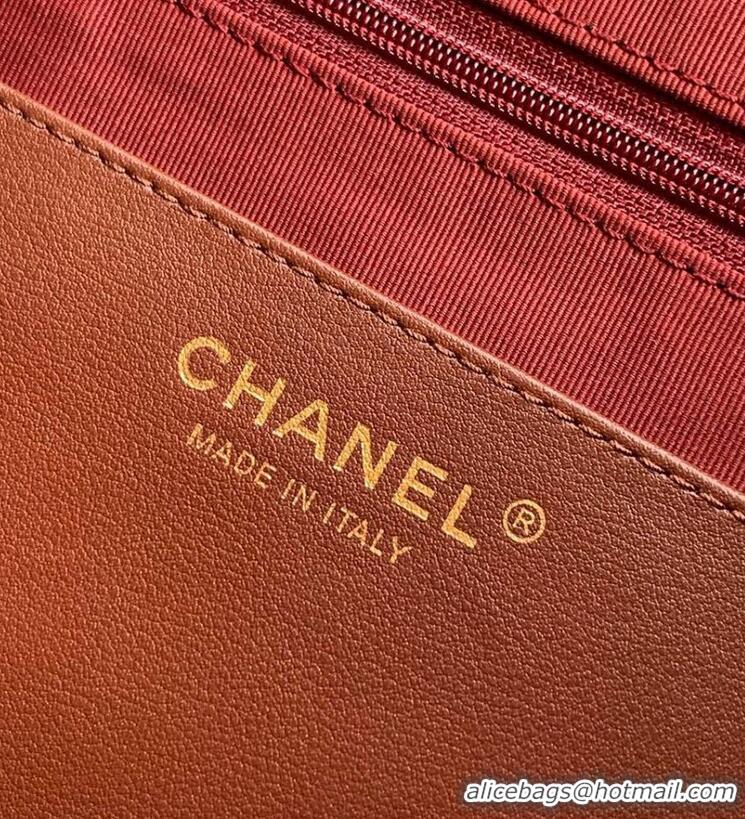 Top Grade Chanel Maxi Hobo Bag Original Shiny Calfskin Leather AS5838 Brown/Gold