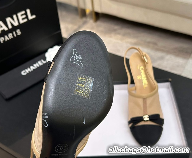 Unique Style Chanel Mesh & Grosgrain Slingbacks Pump 9cm with Bow G47021 Beige 2026