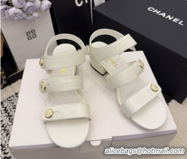 Top Grade Chanel Shiny Calfskin Leather Heel Sandals 4cm with Button Strap G46793 White 2026