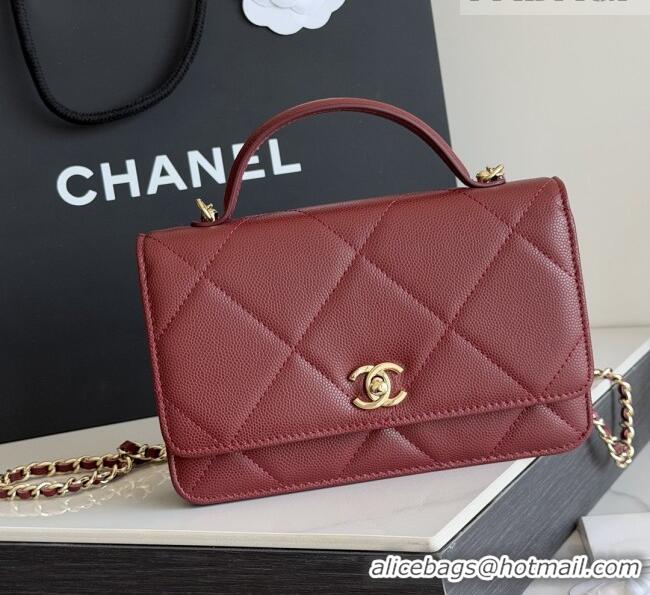Famous Brand Chanel Wallet On Chain with Top Handle Grained Shiny Calfskin AP4931 Burgundy 2026