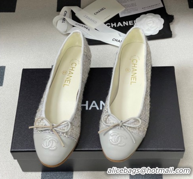 Top Design Chanel Tweed & Lambskin Leather Ballet Flats with Bow G02819 Grey 2026