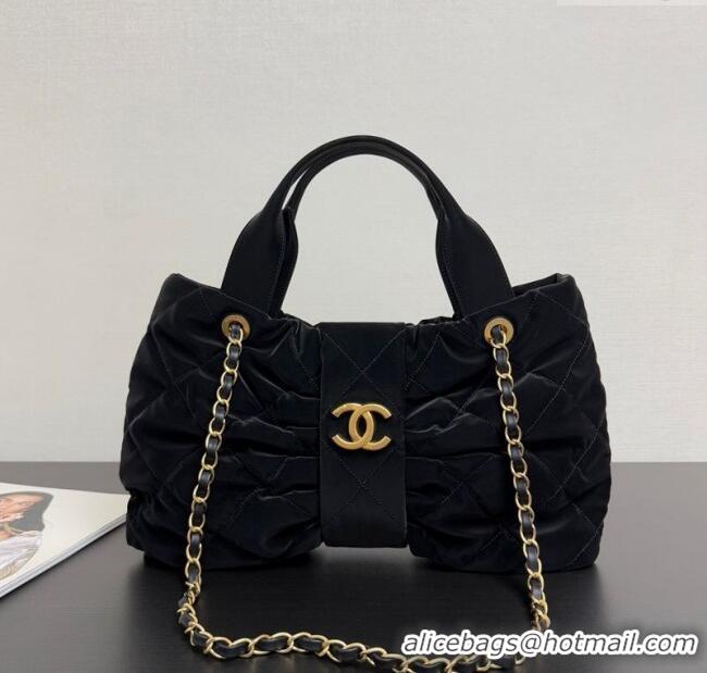 Top Grade Chanel Velvet-Effect Nylon Bow Bag AS5851 Black 2025