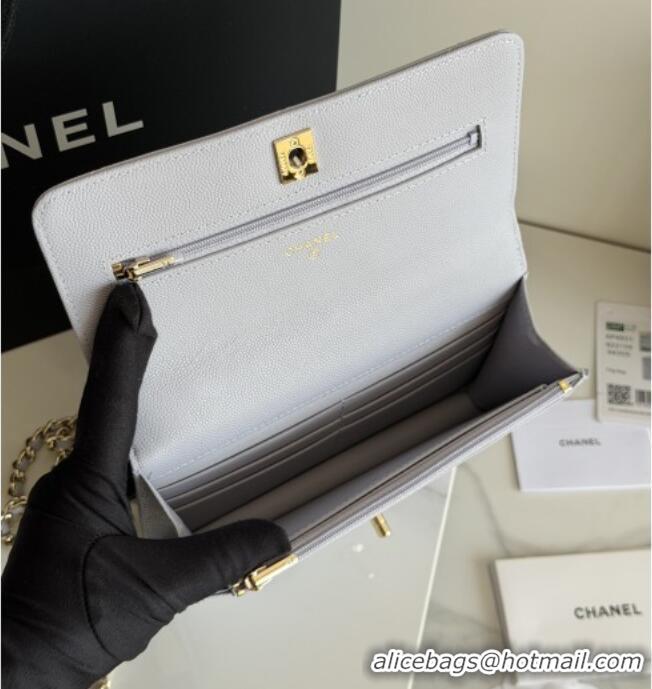 Top Grade Chanel Wallet On Chain with Top Handle Grained Shiny Calfskin AP4931 Light Grey 2026