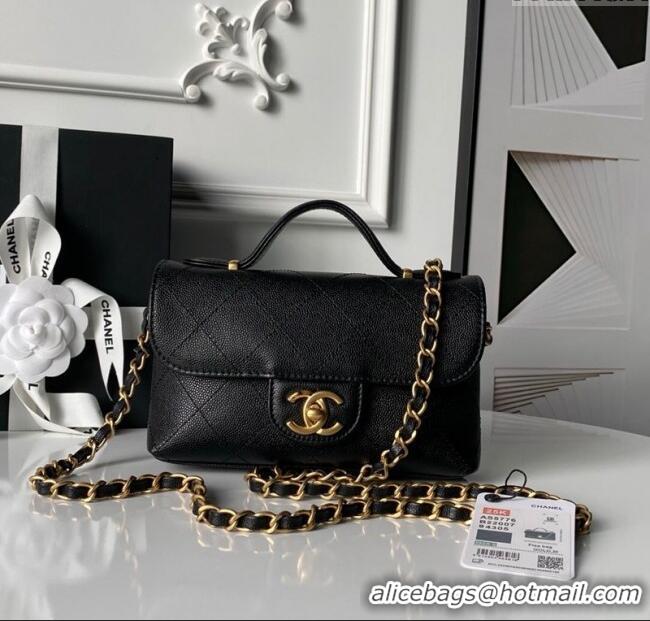 Top Quality Chanel Calfskin Leather Small Flap Bag with Top Handle AS5776 Black 2025