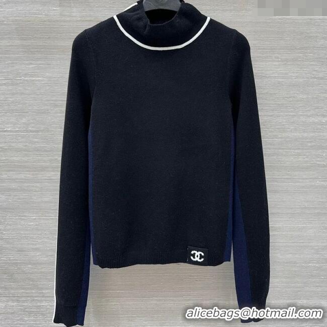 Top Grade Chanel Wool Top with CC Logo CH110517 Black 2025