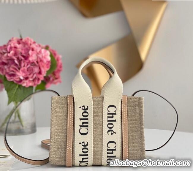 Best Price Chloe Mini Woody Tote Bag in Linen Canvas and Calfskin Leather 1120 Beige 2025