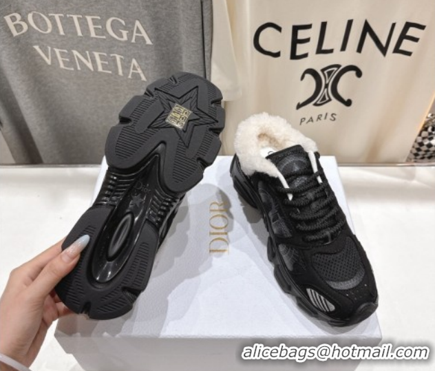 Best Grade Dior Chrono Sneaker Mules in Mesh, Suede and Wool Black 51029065