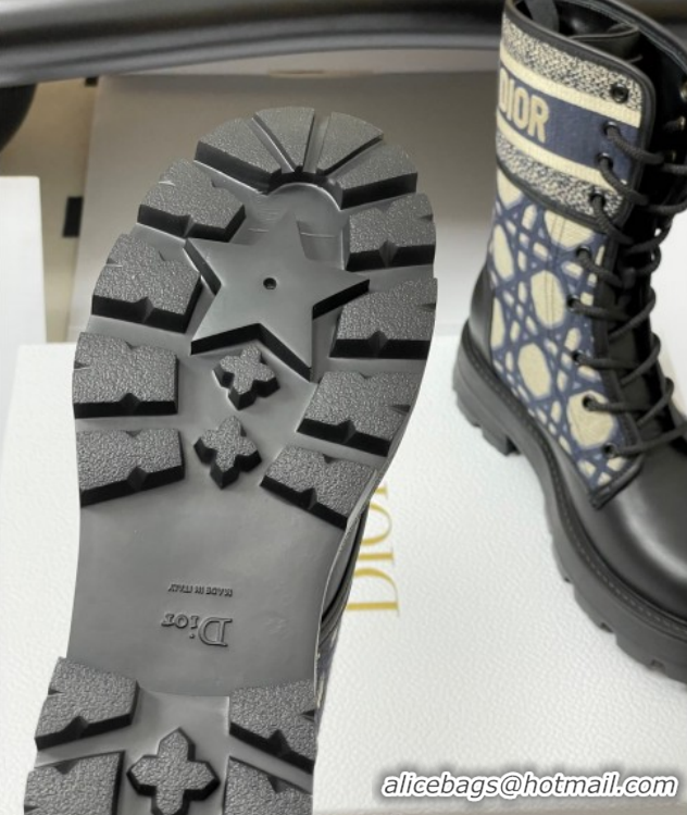 > Shoes Plaza > Chrisitan Dior Shoes > Purchase Dior D-Major Ankle Boots 4.5cm in Black Calfskin with Beige Embroidered Cannage Cotton 1029009