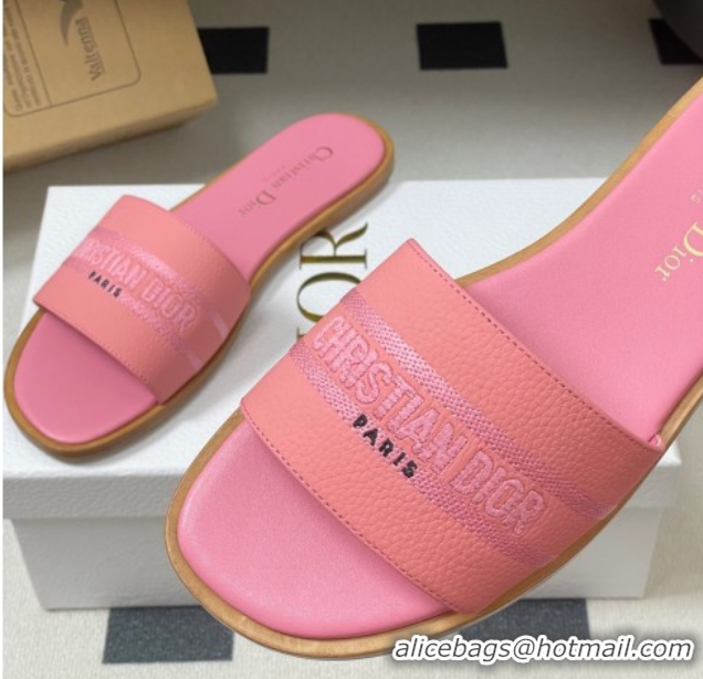 Shop Duplicate Dior Dway Flat Slides Sandal in Grained Calfskin Leather Pink 50822069