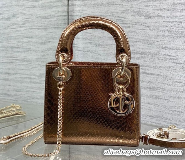 Duplicate Dior Mini Lady Dior Bag in Snakeskin Leather DR012606 Bronze 2026