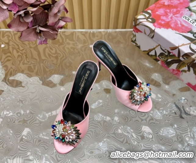 Perfect Dolce & Gabbana Satin Heel Slides Sandal 10cm with Strass DG121104 Light Pink 2026
