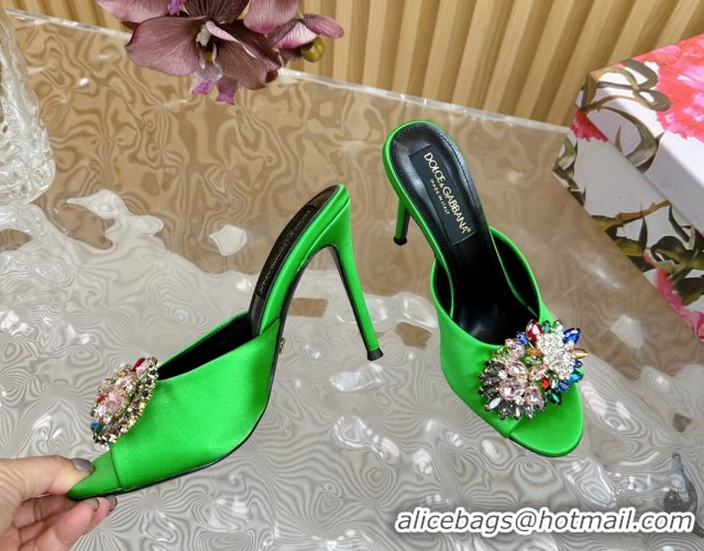 Top Grade Dolce & Gabbana Satin Heel Slides Sandal 10cm with Strass DG121104 Green 2026