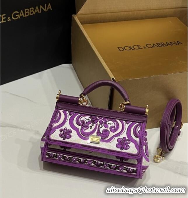 Top Grade Dolce&Gabbana Small Sicily Handbag with Majolica Embroidery D0401 Purple 2025