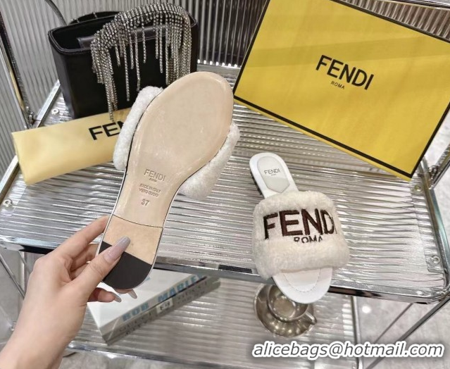 Top Grade Fendi Flat Slides Sandal in Shearling Wool White 2025 FE103003 1030018