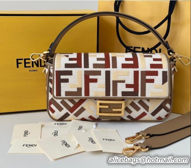 Best Quality Fendi Baguette Medium Bag in Canvas with FF embroidery 0159M Red/Multicolor 2025