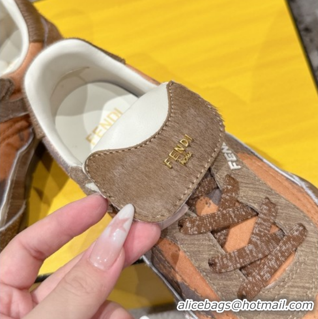 Top Grade Fendi Wave Pulse Low-tops Sneakers in Fabric and Suede Orange/Brown 1216068 2026