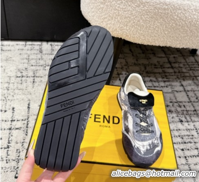 Unique Style Fendi Wave Pulse Low-tops Sneakers in Fabric and Suede Black/Blue 1216069 2026