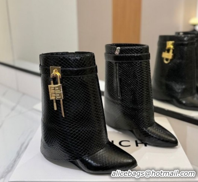 Top Grade Givenchy Shark Lock Wedge Ankle Boots 8.5cm in Snakeskin Embossed Leather 1210016 Black 2026