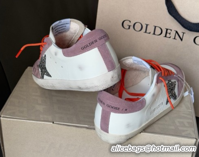 Pretty Style Golden Goose Women's Super-Star with silver glitter star and lilac purple suede heel tab 0902095