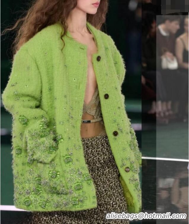 > Clothes Online > Gucci Clothes > Discount Gucci Wool Cashmere Cardigan with Pearls and Strass Charm 0729 Green 2025