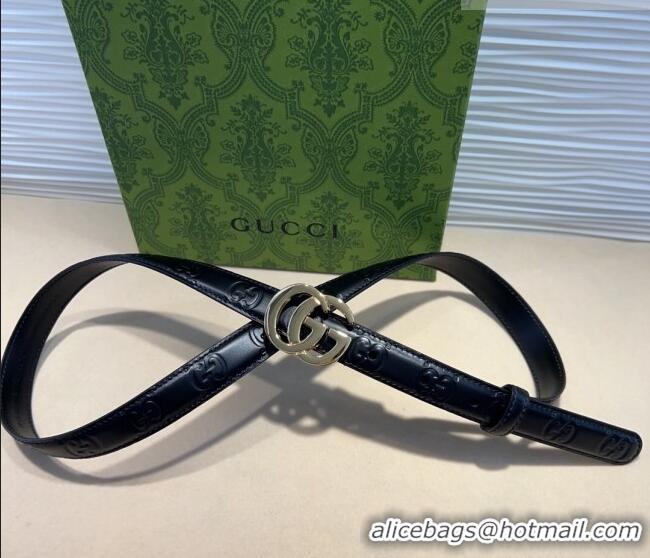 Trendy Design Gucci GG Embossed Leather Belt 2cm with GG Buckle 1127 Black/Silver 2024