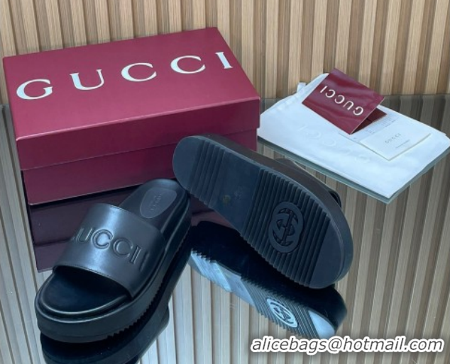 Best Grade Gucci Leather Platform Slides Sandal 5.5cm with Logo Signature Black GG121701 2026
