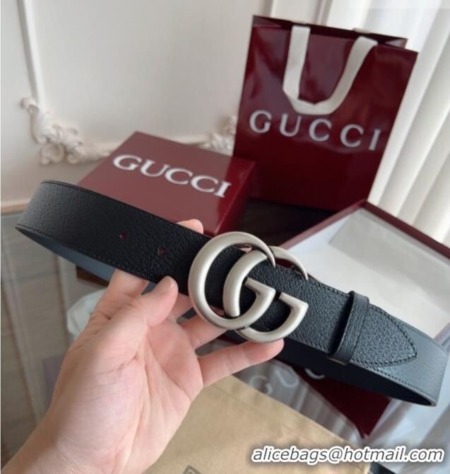 Best Price Gucci Grained Calfskin Belt 4cm G111734 Black/Silver 2025