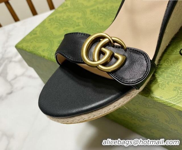 Top Grade Gucci Wave Leather Wedge Espadrille Sandals 10cm Black 2025 GG042304