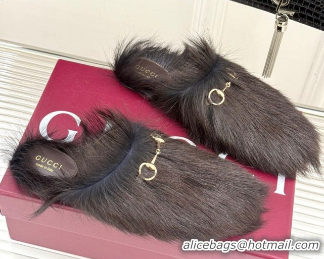 Big Discount Gucci Wool Flat Mules with Horsebit Dark Brown 1020044