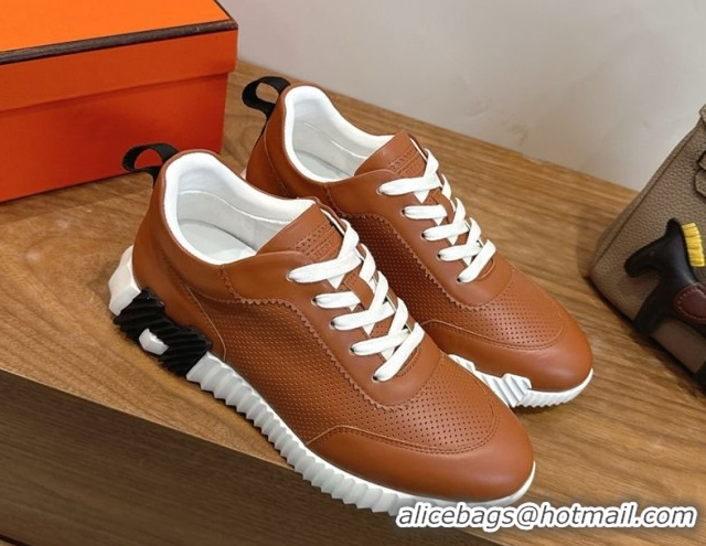Good Looking Hermes Bouncing Sneakers in Perforated Calfskin Leather Tan Brown 2026 H261013