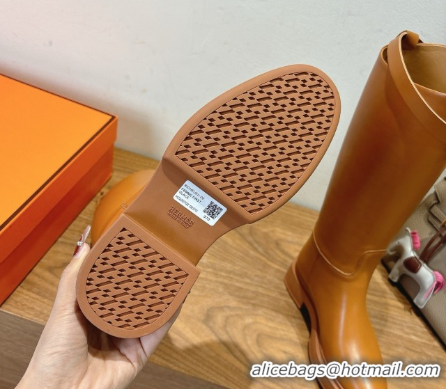 Top Grade Hermes High Platform Boots in Calfskin Leather with Kelly Strap Light Brown H102301 1023064