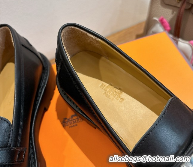 Top Grade Hermes Icone Platform Loafers in Calfskin Leather with Kelly Buckle Black 1023003