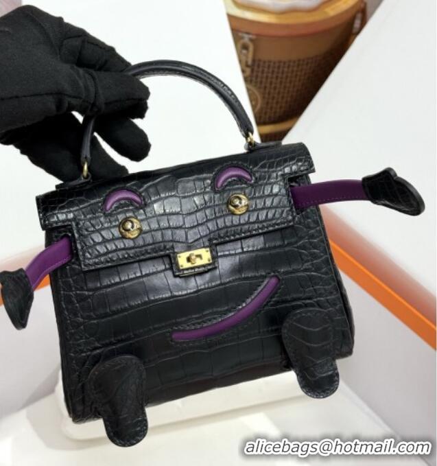 Best Quality Hermes Kelly Doll Bag in Matt Alligator Leather H16 Black 2025(Handmade)