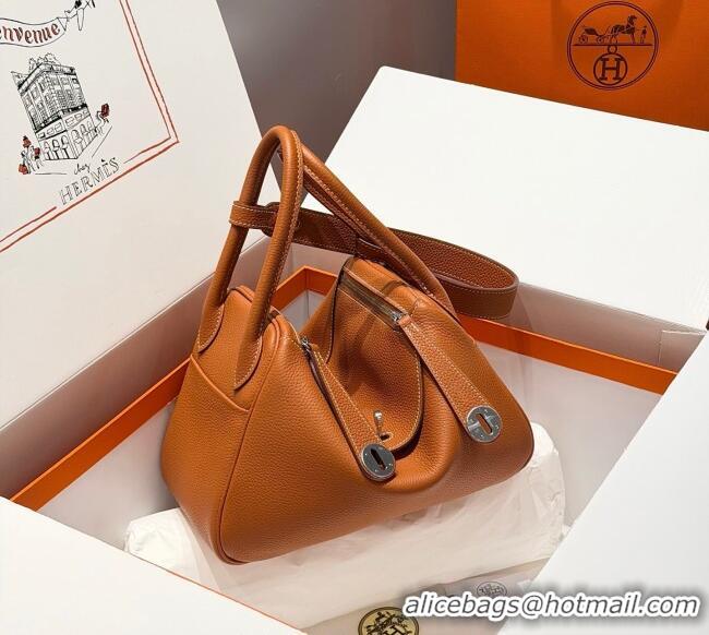 Top Grade Hermes Lindy Bag 26cm in Clemence Leather 2637 Brown/Silver 2025 (Half Handmade)