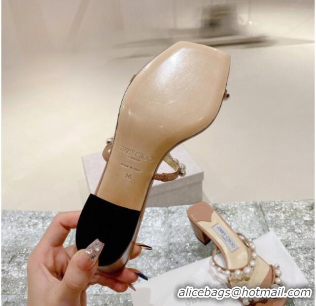 Grade Quality Jimmy Choo Amara Leather and Pearls Heel Slide Sandals 4.5cm Light Brown 2082612
