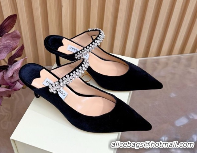 Duplicate Jimmy Choo Bing Heel Mules 6.5cm with Strass Strap in Velvet Black 2026 0724001