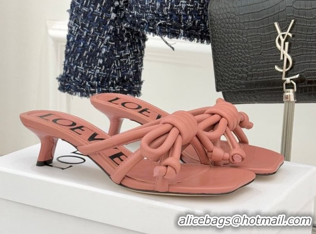 Top Grade Loewe Flamenco Knot Heel Slides Sandal 3.5cm in Lambskin Leather Blush Pink 2026 0226004